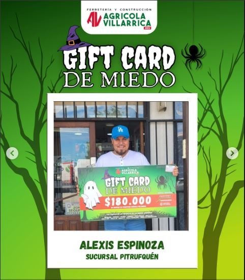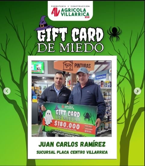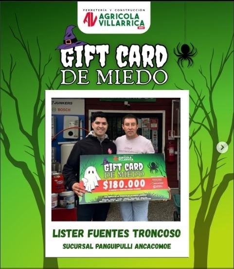 La campaña “Gift Cards de Miedo” fue todo un éxito y reunió a una gran comunidad de participantes motivados por llevarse un premio para el hogar, el campo o el taller. Después de una semana de expectativa, ya tenemos a los 5 ganadores que se llevaron nuestras Gift Cards especiales de Ferretería Agrícola Villarrica.