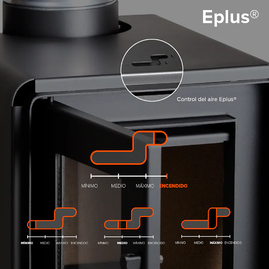 El sistema Eplus® otorga un control preciso sobre la temperatura mediante un deslizador que regula la entrada de aire: