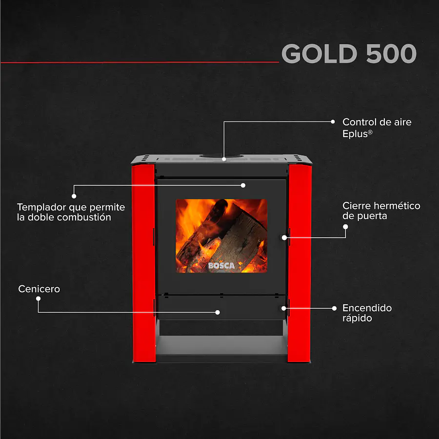 ESTUFA LEÑA GOLD 500 ROJO BLACK VISION BOSCA